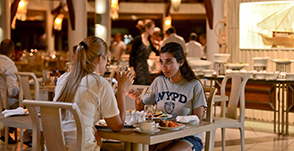 Кафе-ресторан а-ля карт, расположенный на просторной террасе и работающий круглосуточно. Обслуживание по меню, интернациональная кухня: от спагетти и индийских карри до пиццы и гамбургеров.